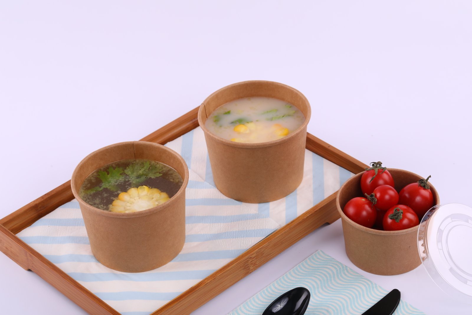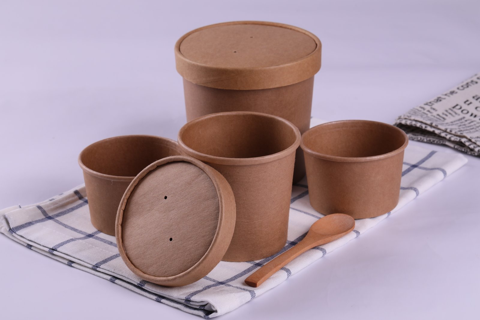 Food-grade kraft paper, leak-proof design, ideal for soups and fast food. Comes with secure matching lids. Perfect for takeout.