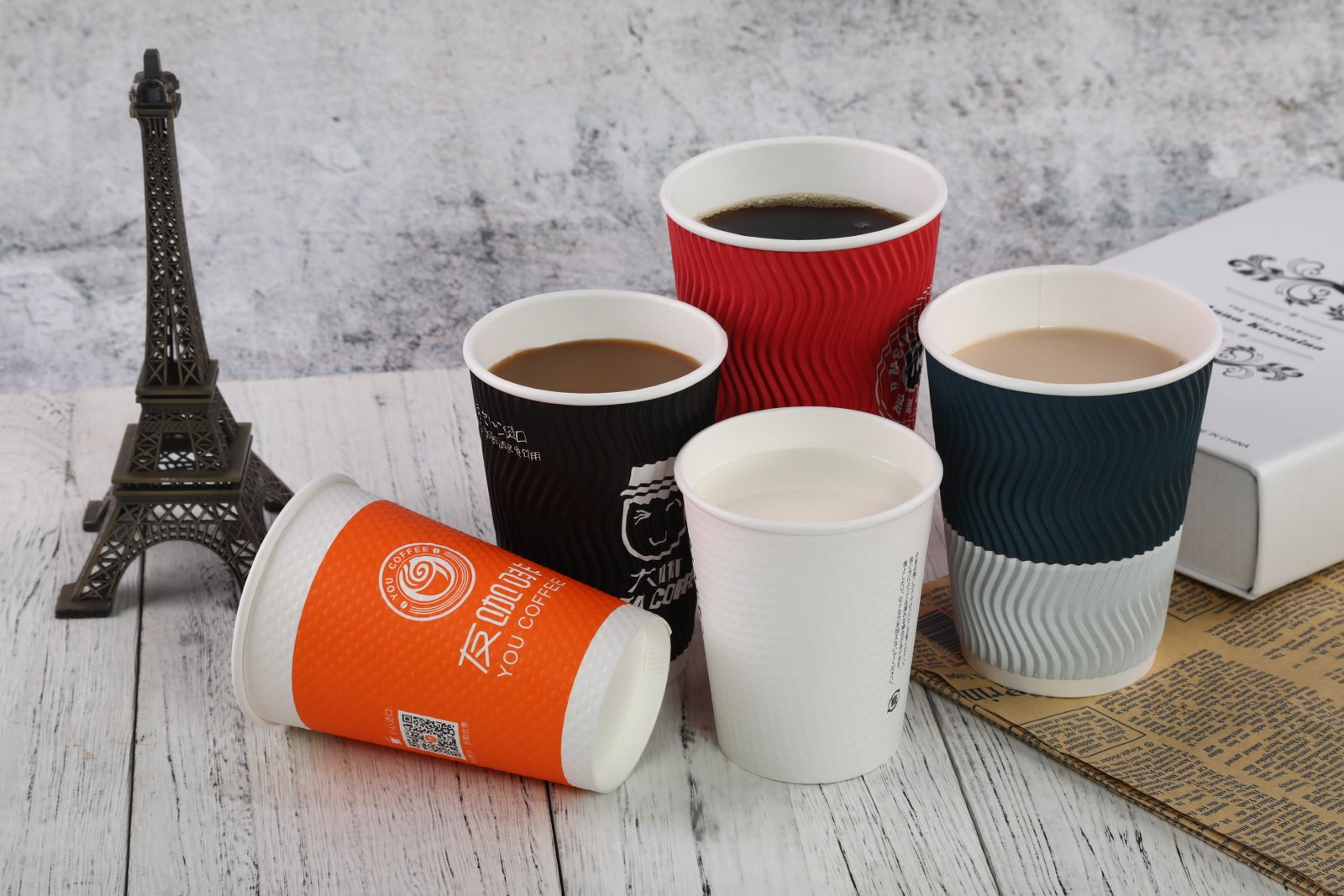 Logo printed disposable heat-insulation ripple wall paper cup for coffee