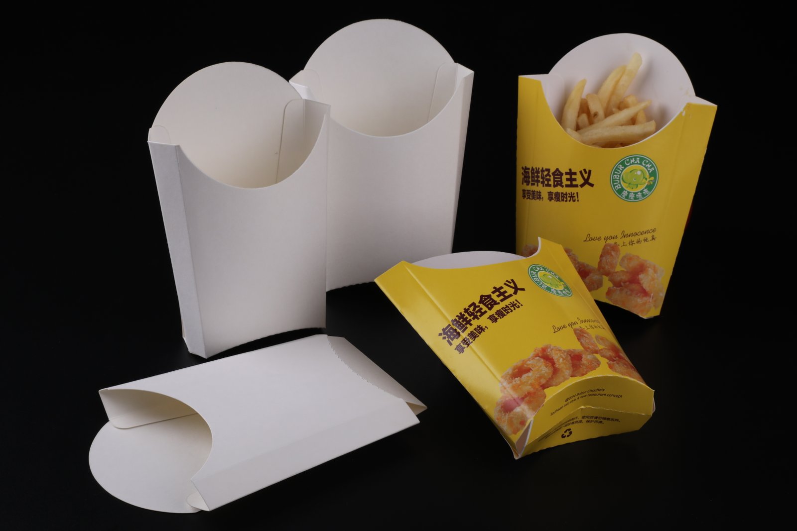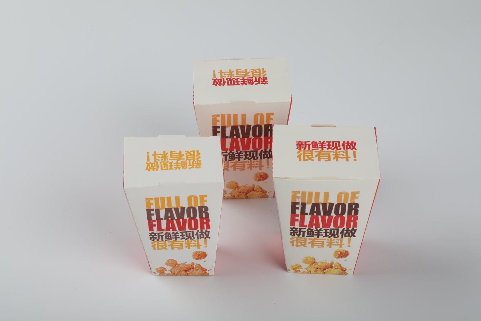 - Boxes from small size to large size can be applied to the packaging of French fries ,popcorn chicken and other baked snacks